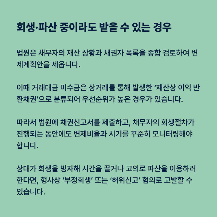 거래대금 회수 과정에서 또 다른 변수가 생길 수 있습니다.