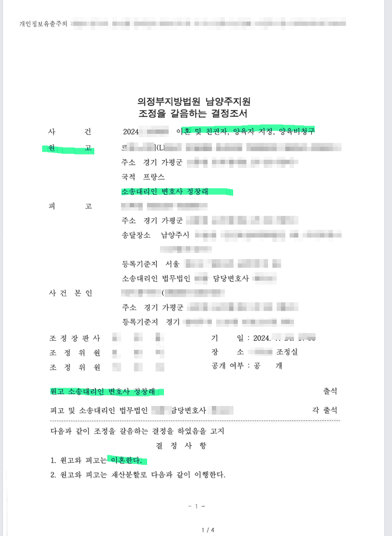 외국에 있는 상태에서 한국 남자 를 상대로 이혼청구 소송을 진행하였다.