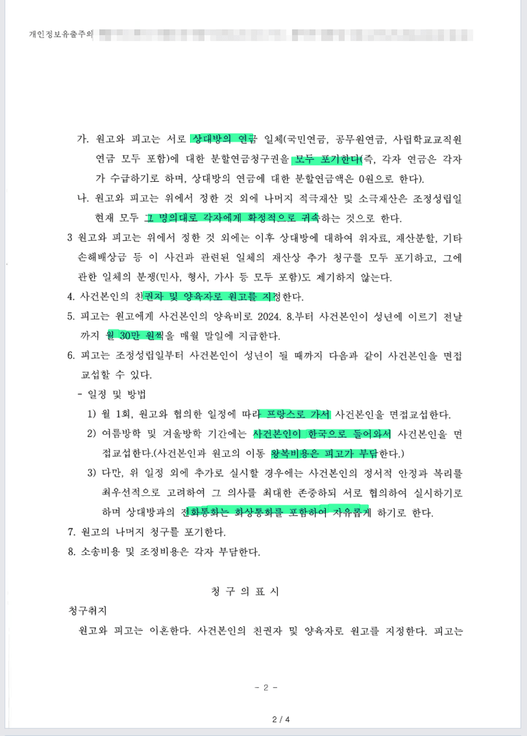 본인은 프랑스로 귀국하고 아이를 데리고 나갔는데