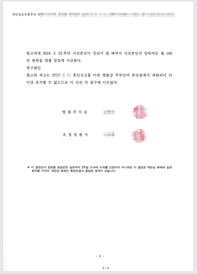 이에 이혼 위자료 재산분할 양육비 면접교섭 등에 대하여