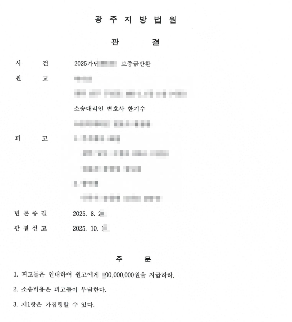 그 결과 법원은 원고의 청구를 모두 받아들여 원고 전부 승소 판결을 하였습니다.