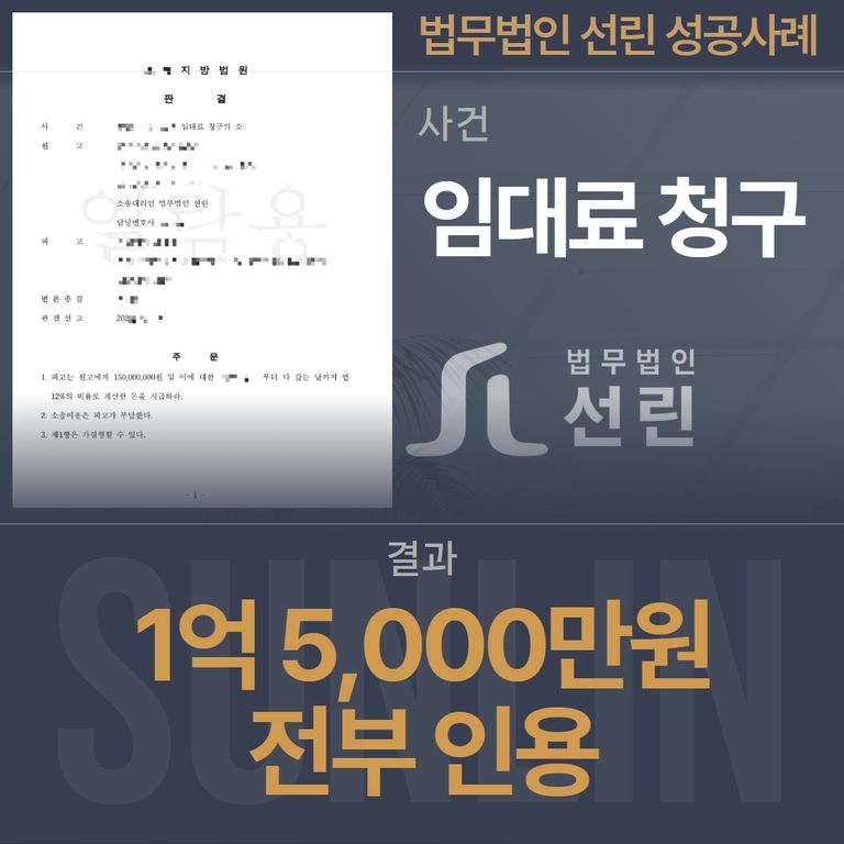법무법인 선린은 원고를 대리하여 임대료 청구소송을 제기했습니다.