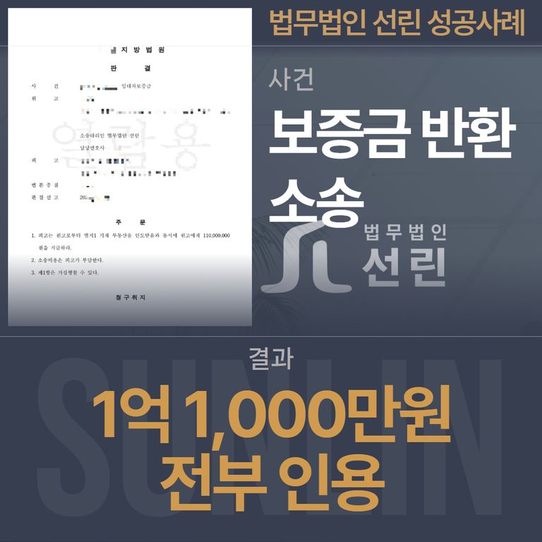 법무법인 선린이 임차인의 권리를 끝까지 지켜낸 전액 승소 사례입니다.