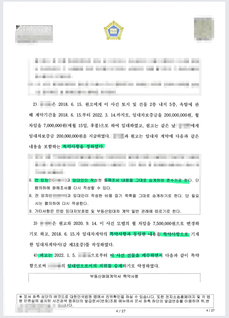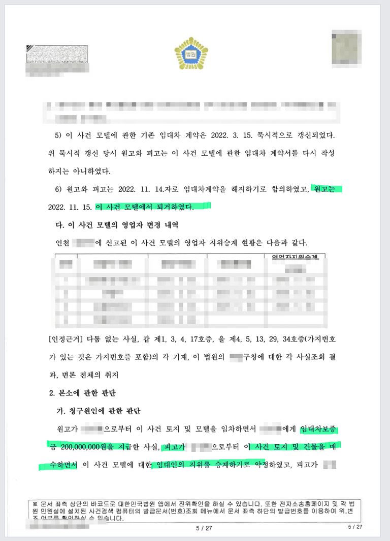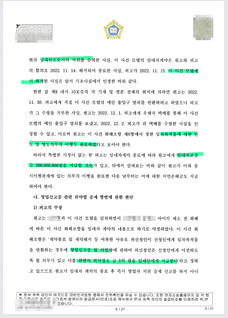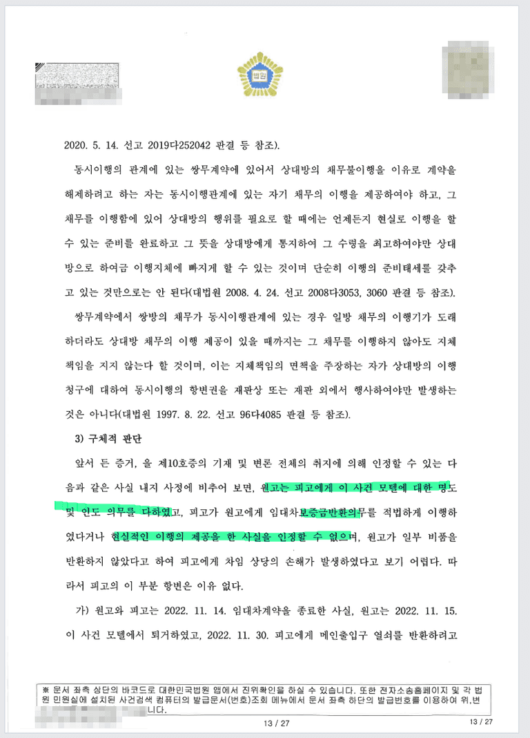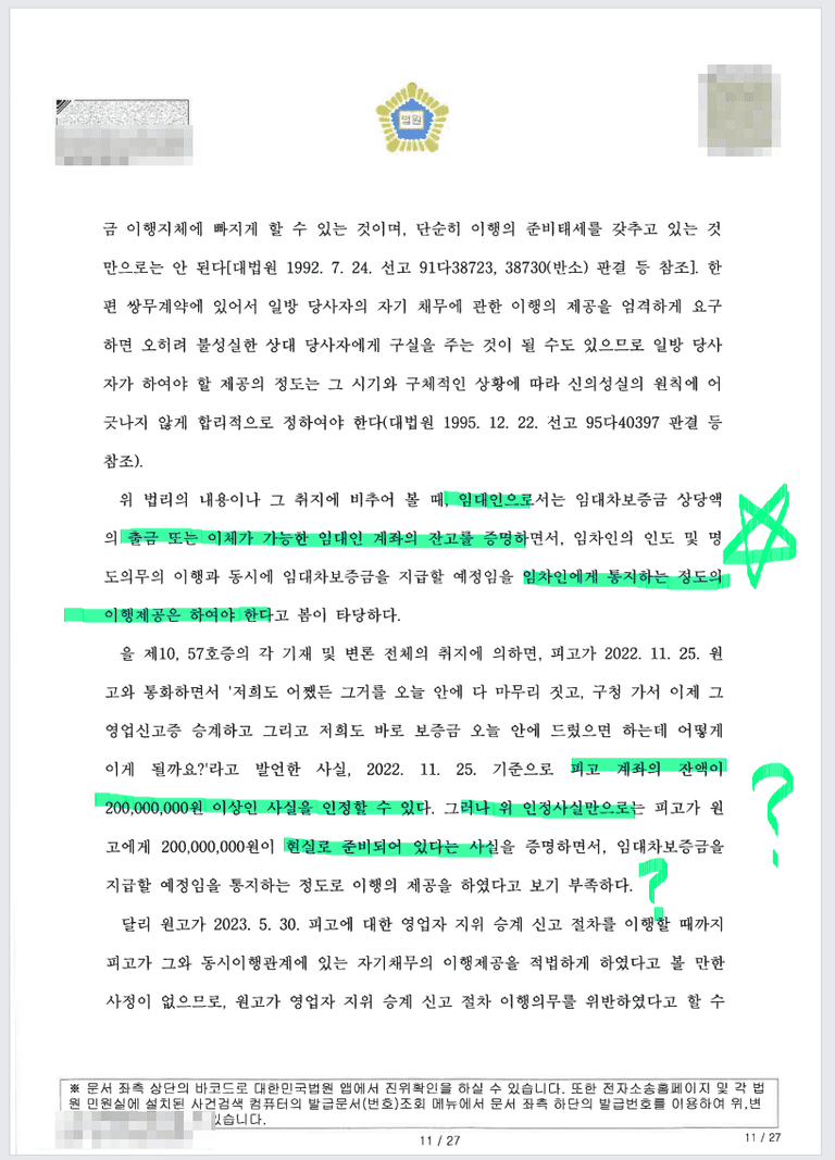 임대인 또한 보증금 2억원을 바로 주께 라고 말만 하였지 실제 잔액증명을 하지 않았다 등의 이유로