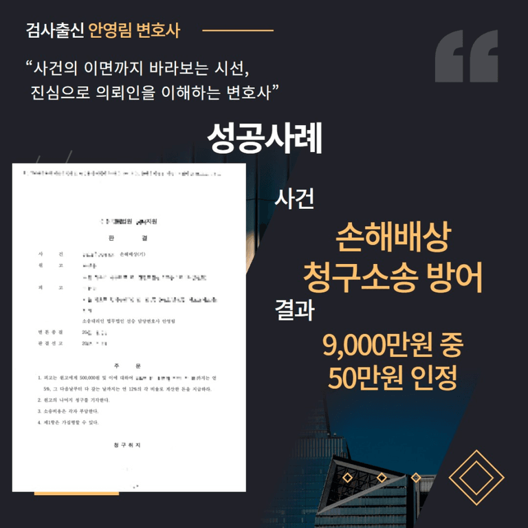 손해배상청구소송 방어 → 결과 : ‘9,000만원 중 50만원’ 인정