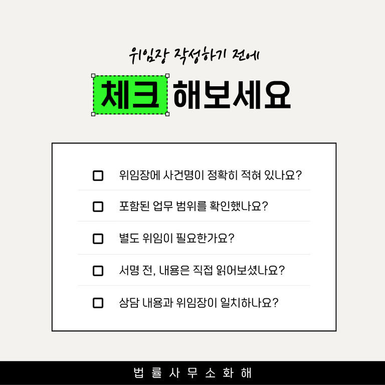 결국 위임장은 의뢰인의 권리를 명확히 보호하는 장치입니다. 때문에 도장 찍기 전, 반드시 담당 변호사와 ‘이 문서에 포함된 업무 범위’를 구체적으로 짚고 넘어가시는 것이 좋습니다. 그 작은 확인이 추후 사건의 방향과 비용 투명성에도 큰 차이를 만들어 줍니다.