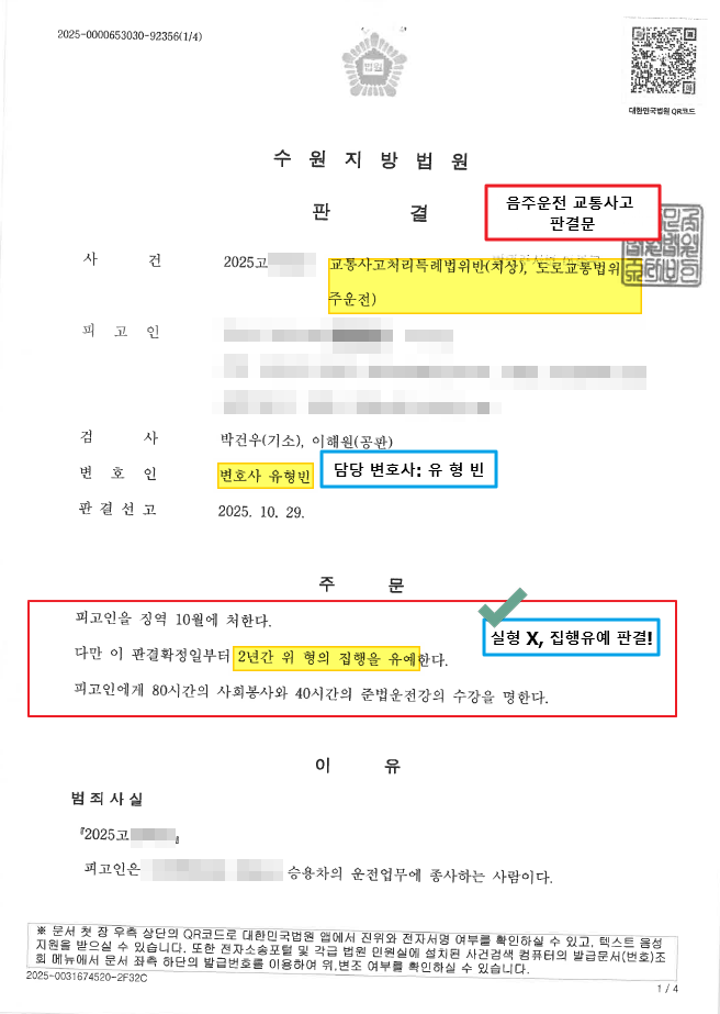 음주운전 중 교통사고 치상 사건_집행유예 2년 성공사례