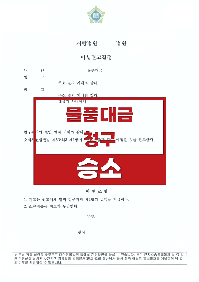 [물품대금 청구] 승소사례