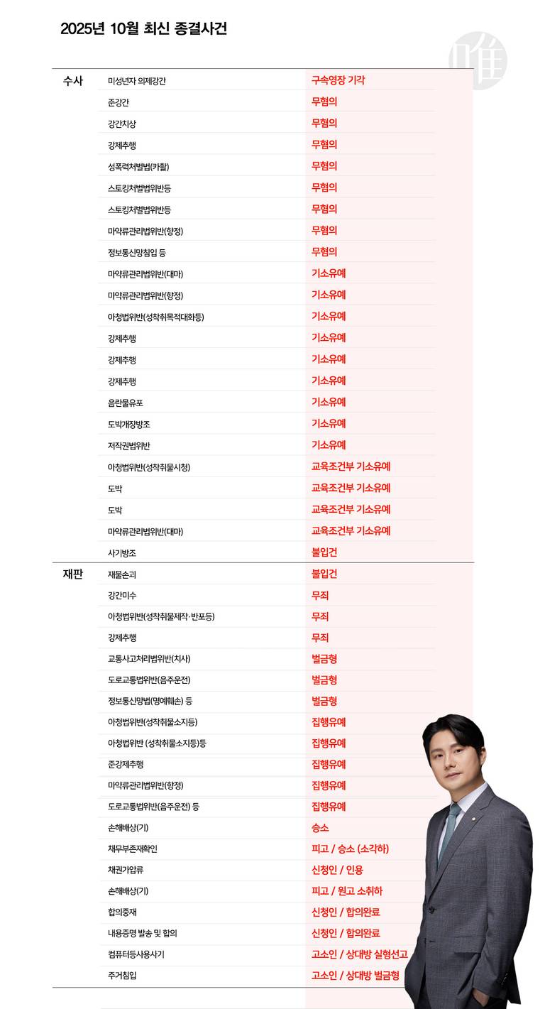 또한 이번 달에는 마약류관리법 위반, 음주운전, 도박, 저작권법 위반 사건 등에서도