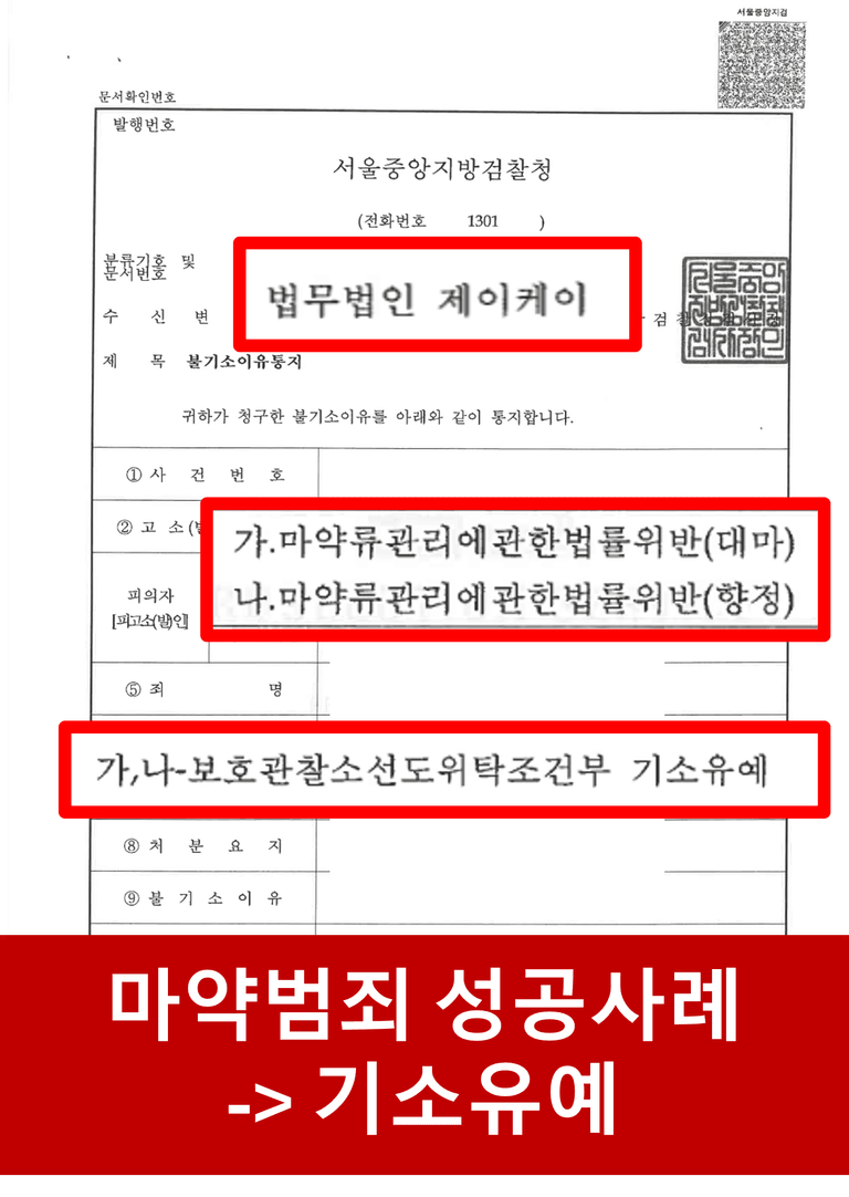 마약 사건은 일반 형사사건보다 훨씬 복잡합니다. 수사 초기 대응, 진술 전략, 양형자료 준비 등 전문적인 법률 지식과 경험이 필수입니다. 반드시, 형사전문변호사의 도움을 받기를 권해드립니다. 특히 사건 초기부터 변호사가 개입하면, 불필요한 진술 실수나 오해를 방지하고 검찰 단계에서 기소유예 가능성을 극대화할 수 있습니다.