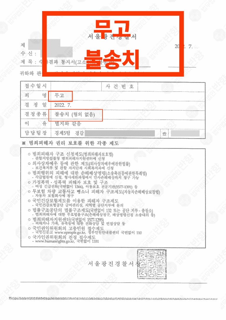 A씨에 대해 무고 및 명예훼손 모두 ‘혐의 없음(불송치)’ 결정을 내렸습니다 .