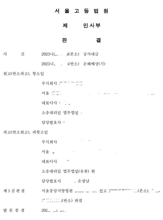 1심에서는 원고의 청구와 피고의 청구가 모두 일부 인용되었는데, 건설사(항소인)가 이 판결에 불복하여 항소를 제기하였습니다.
