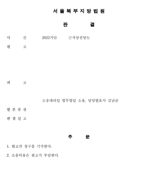 재판부는 본 법무법인의 주장을 받아들여, “피고의 대금 지급의무는 모두 이행되었고, 원고의 청구는 이유 없다."라고 판단하였습니다.