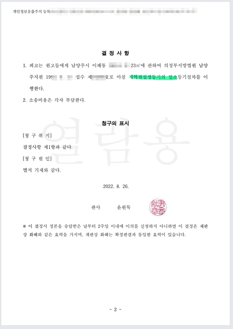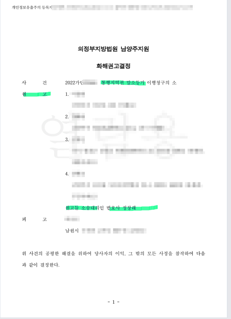 화해권고로 이를 말소시킨 사례