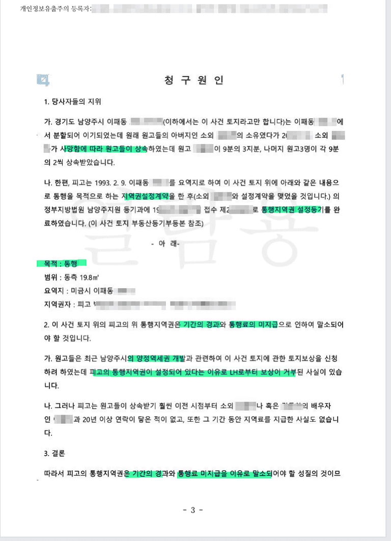 지역권말소 되어야 LH 로부터 토지보상이 되므로