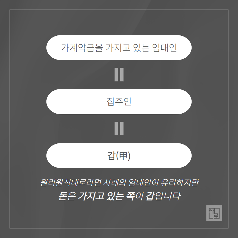 원리원칙대로라면 사례의 임대인이 유리하지만 돈은 가지고 있는 쪽이 갑입니다