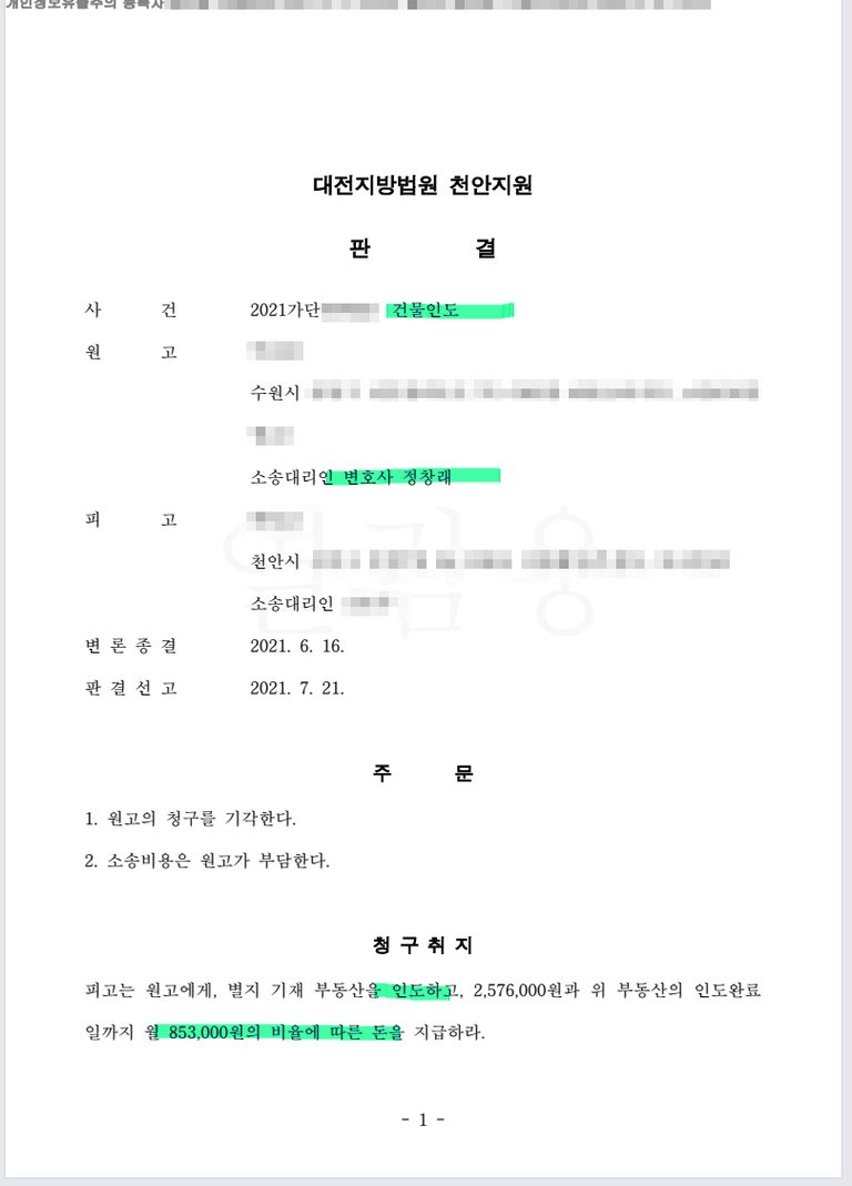 2기의 미지급월세는 요건에 해당하지 않아 인도를 하지 않아도 된다는 사례