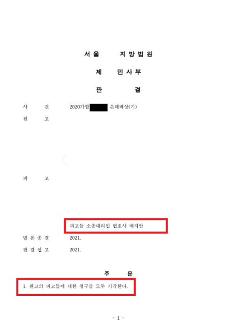 결국 법원은 원고의 주장을 1심에서 모두 받아들이지 않았고,