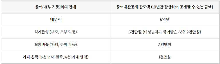 Q2. 주식 증여 시 세금 부담을 줄이는 가장 중요한 '증여재산공제' 한도는 어떻게 되나요?