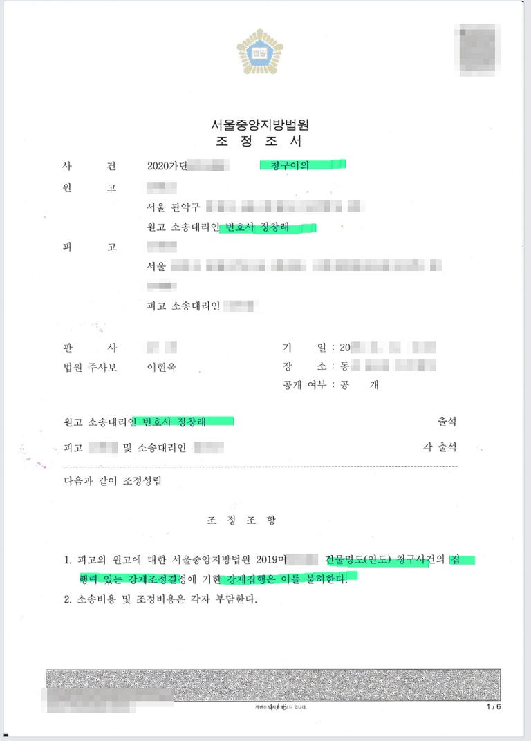 이에 임대인이 위 조정조서에 기한 건물경매 강제집행을 불허시키기 위해 청구이의 제기하여