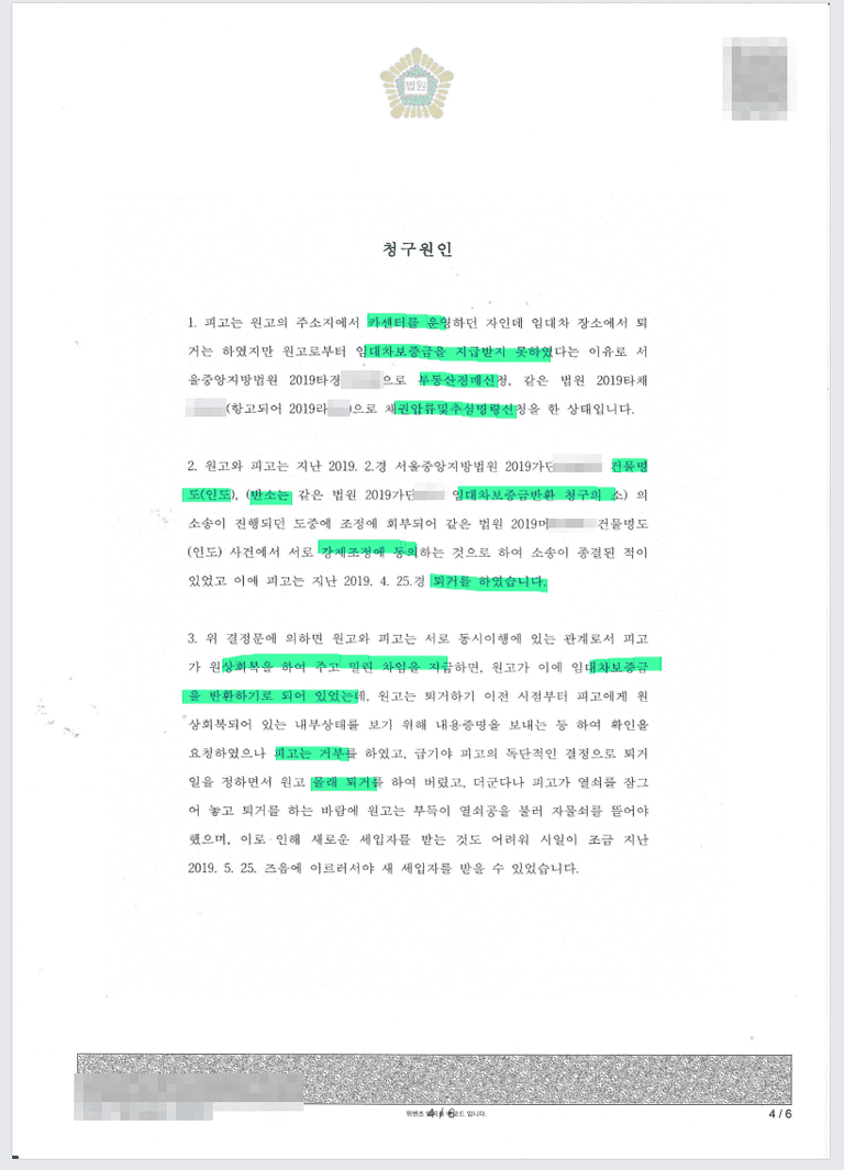 퇴거를 하면서 일부 건물이 파손되었다는 이유로
