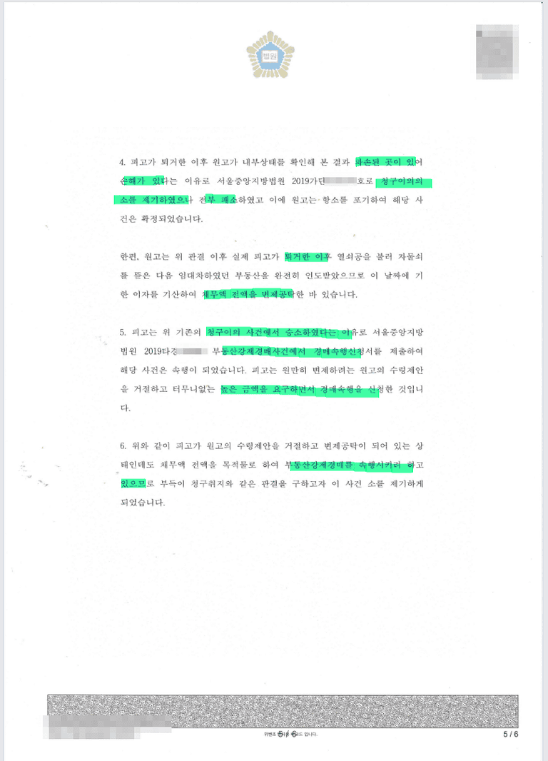 임차인은 보증금반환소, 임대인은 건물명도 소송하던 도중에