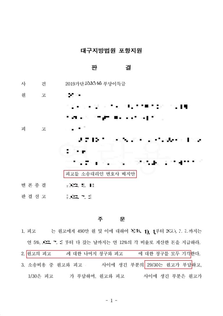 [부당이득금반환청구] 방어 성공사례