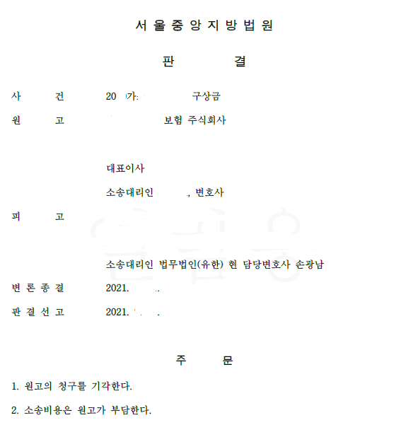 전부 승소하는 것은 쉽지 않을 것이라고 생각했는데, 운 좋게도 재판부가 저희 주장을 받아 들여 전부 기각(승소)하였습니다.