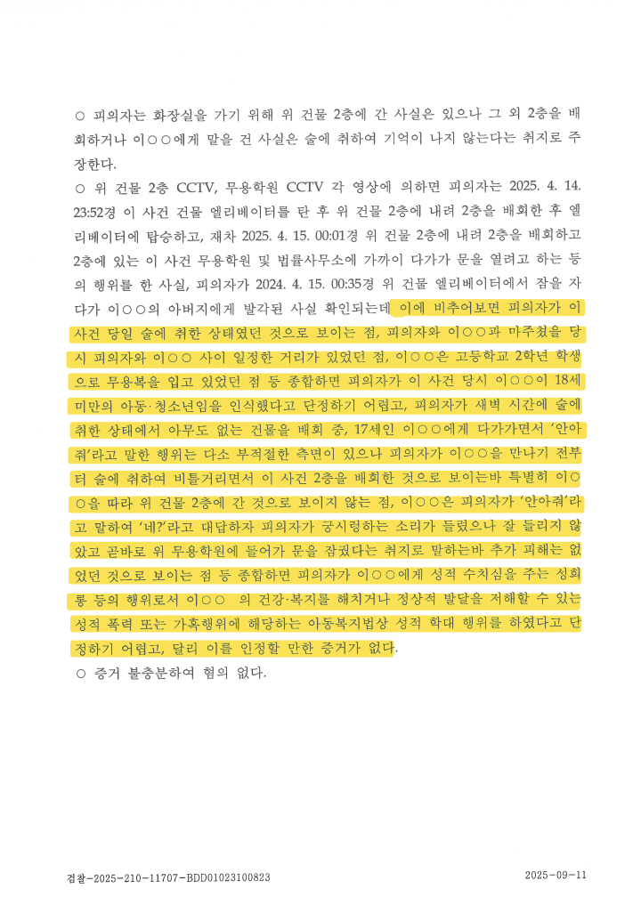 ③ 불쾌한 언행은 있었지만 성적 폭력이나 가혹행위 수준에는 이르지 않았다는 점 때문입니다.