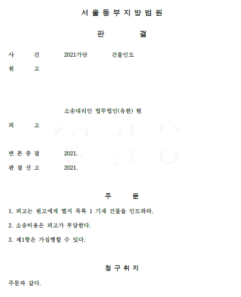 오늘은 #건물인도, 즉 #명도 #소송 실제 승소 사례를 소개하겠습니다.