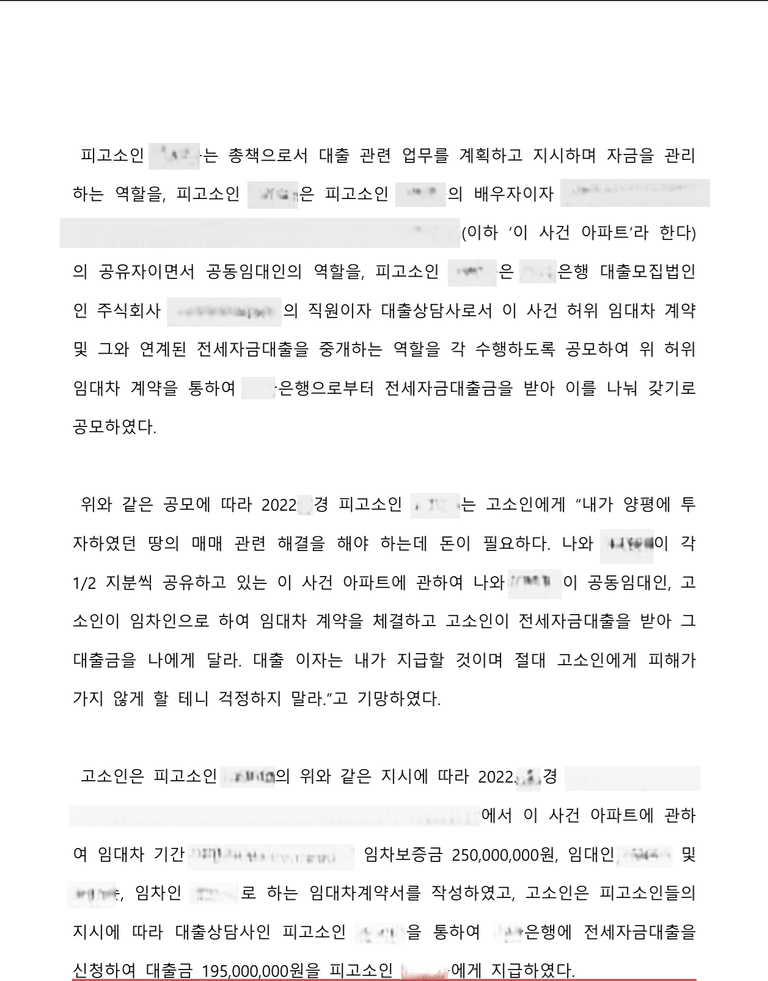 의뢰인은 피고인이 의뢰인 명의로 전세자금대출을 받아 이를 자신에게 지급하면 수고비를 지급하고 자신이 책임지고 대출금을 변제하겠다는 말에 속아 피고인과 임대차 계약을 체결하면서 은행으로부터 전세자금대출을 받아 이를 피고인에게 지급하였습니다.