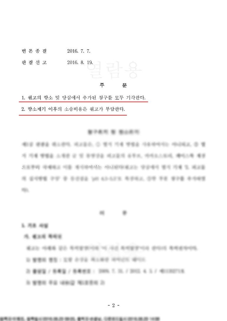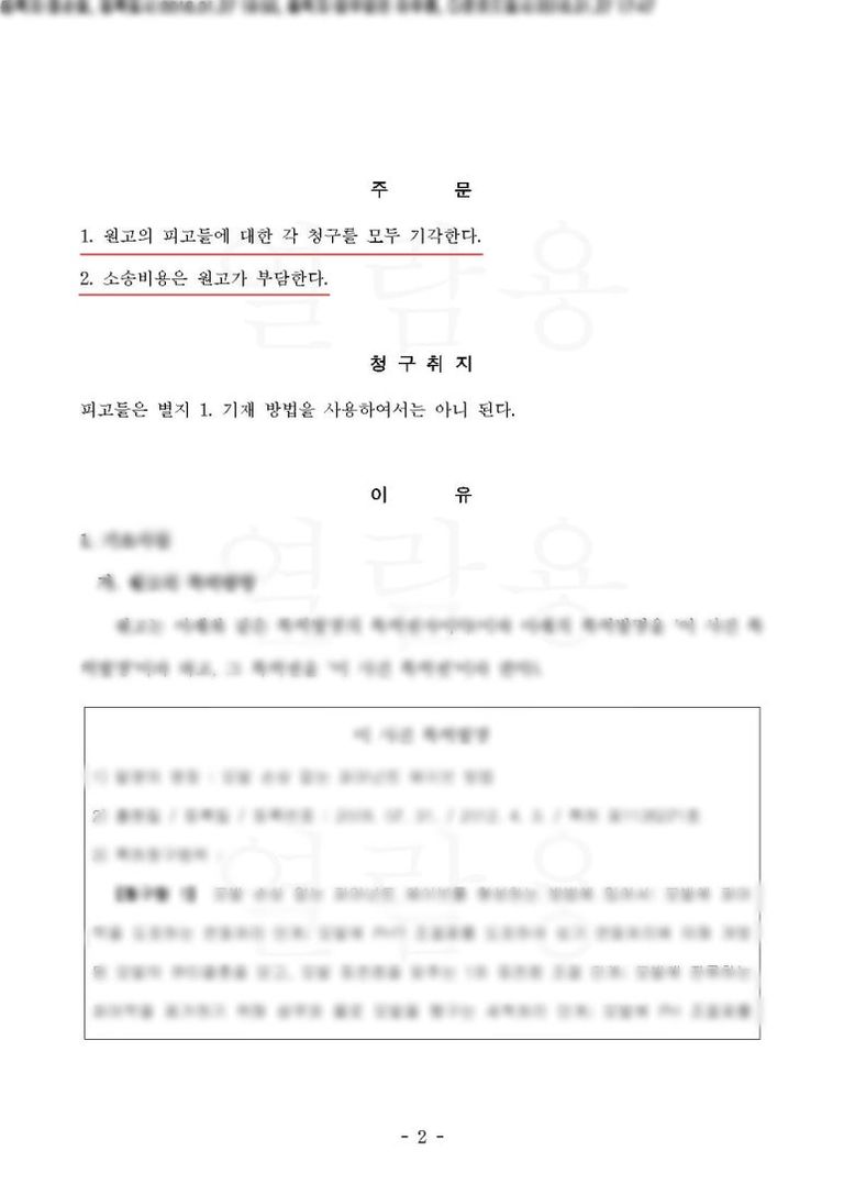 (재판부에서는 자유실시기술 항변만 판단하였고, 권리남용 부분은 따로 판단하지 않았습니다.)