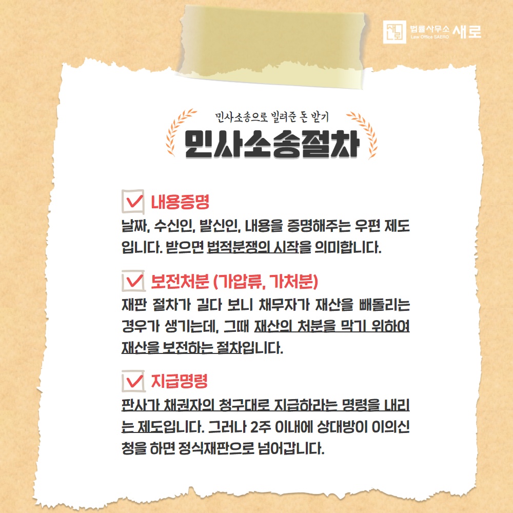 이번 포스트에서는 '민사소송과 강제집행으로 빌려준 돈 법대로 받기'를 설명하겠습니다!