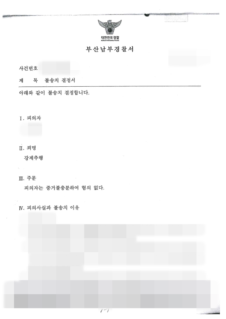 이번 사건에서는 강제추행 혐의를 받은 피의자가 '혐의없음(증거불충분)' 불송치 결정을 받은 성공 사례를 분석합니다.
