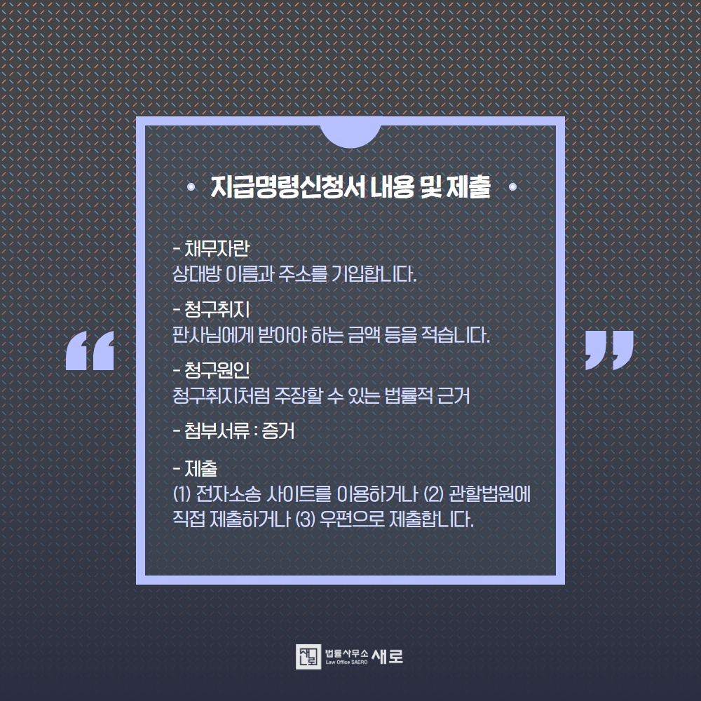 단어가 낯설어 멀게 느껴지시는 분들을 위해 지급명령신청이 무엇이고, 어떠한 절차를 거치며 지급명령신청비용은 얼마가 드는지 자세하게 알려드리겠습니다.
