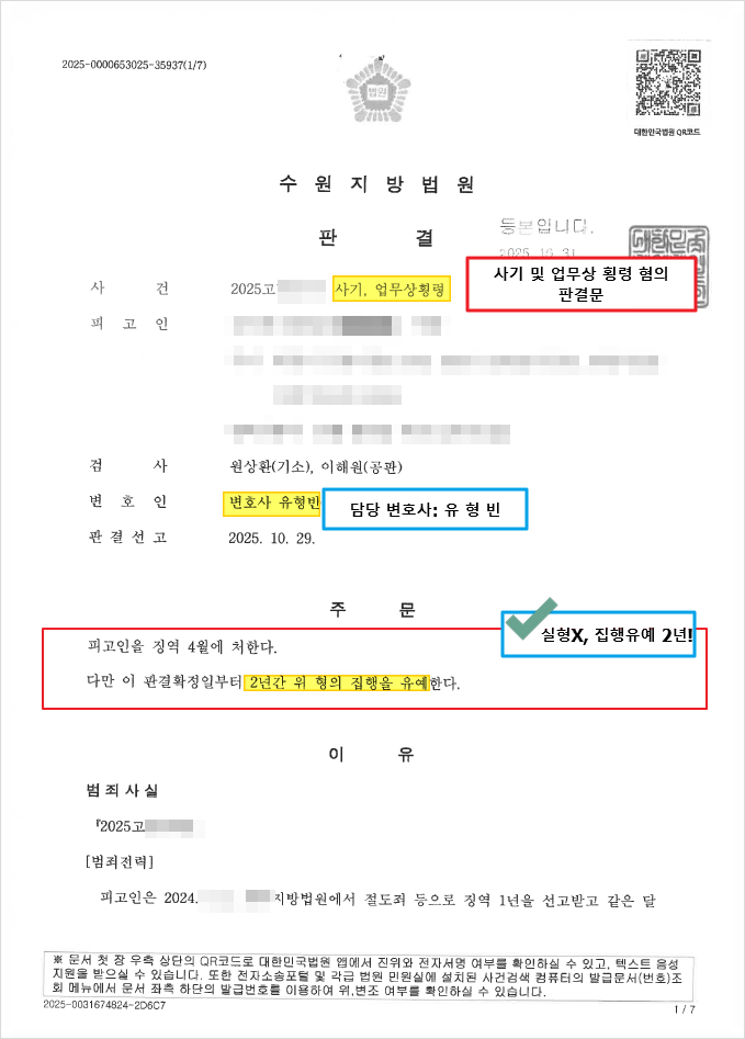 ▶ 사건 결과: 실형을 피하고 집행유예 2년!