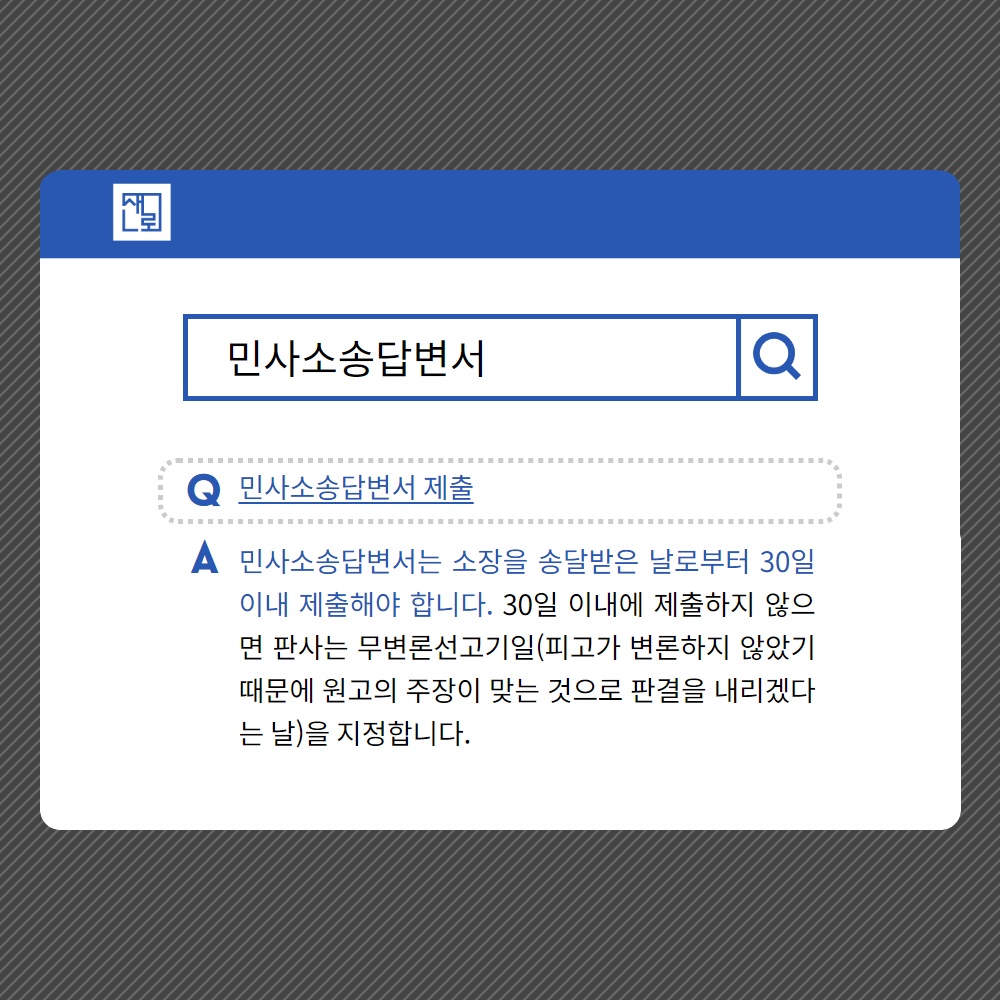 * 민사소송답변서는 소장을 송달받은 날로부터 30일 이내 제출해야 합니다.