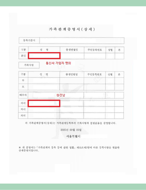 결과적으로 발급받은 가족관계증명서에서 명의자의 자녀가 바로 상간남임이 밝혀졌고, 이를 통해 상간남 신상정보를 특정할 수 있었습니다. 이후 상간남을 피고로 한 소송이 정식으로 진행될 수 있었고, 의뢰인은 위자료 청구 절차를 원활히 이어갈 수 있었습니다.