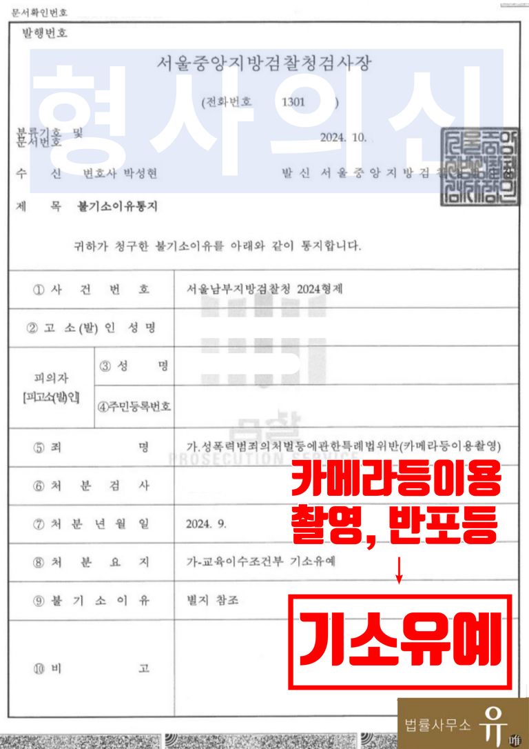 ‘성폭력범죄의처벌등에관한특례법위반(카메라등이용촬영)’ 혐의로 고소되었습니다.