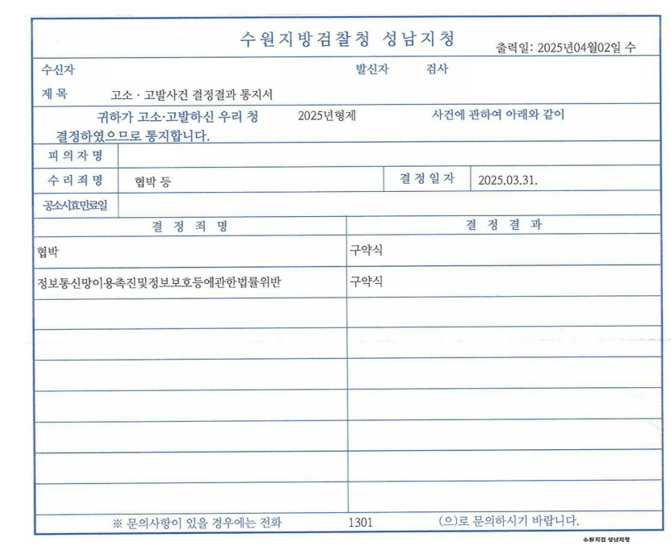친인척간 협박 고소대리 구약식 성공!