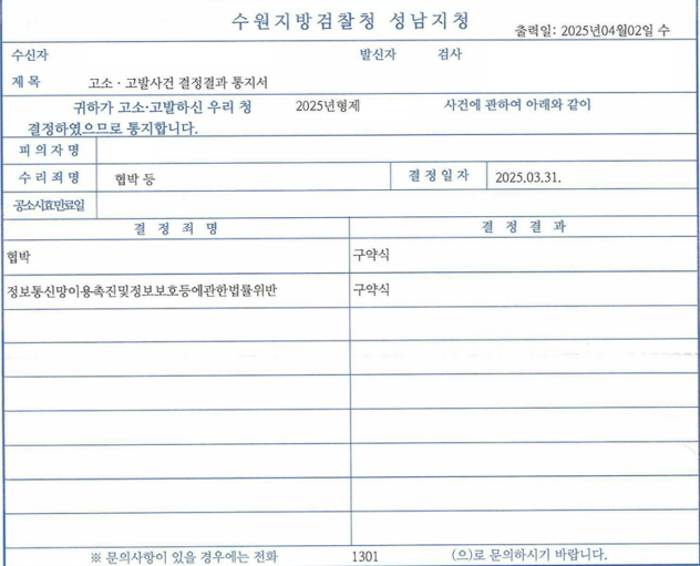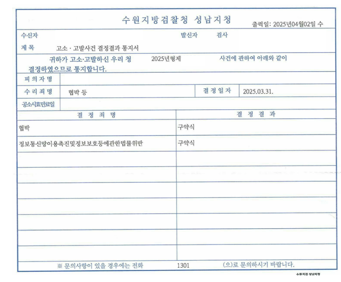 뉴로이어 법률사무소 협박 고소대리 성공사례 중 일부