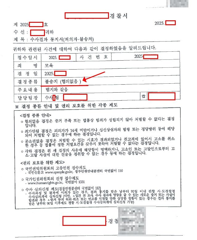 경찰 단계에서 불송치 결정을 받아냈습니다.