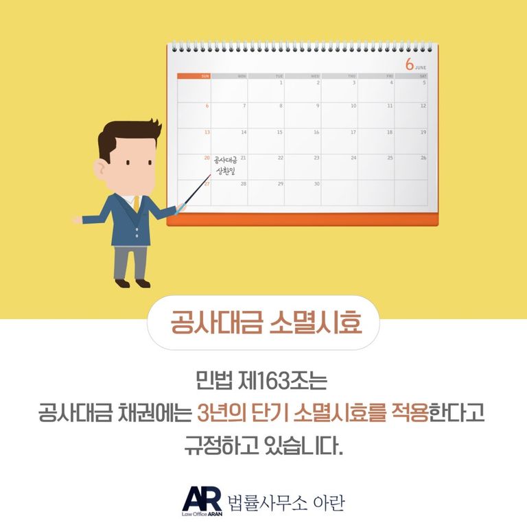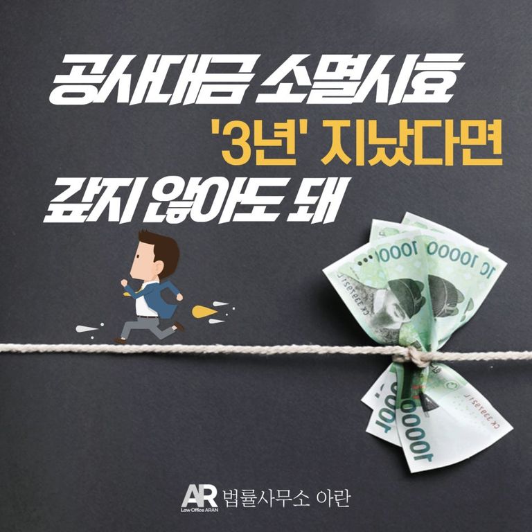 따라서 공사대금채권은 지급기일로부터 3년이 지나면 시효가 완성되어 소멸합니다.