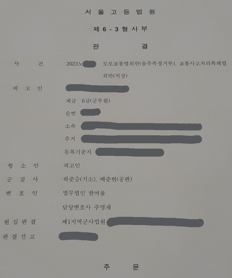 1심 법원 및 사건번호: 제1지역군사법원 2023고OOO