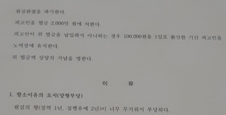 4. 판결 결과: 1심 파기, 벌금 2,000만 원 선고