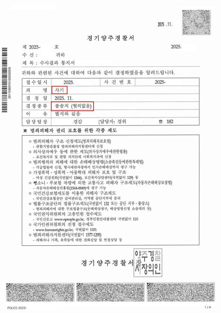 수사기관은 변호인의 주장을 받아들여, 무혐의 결정을 내렸습니다.