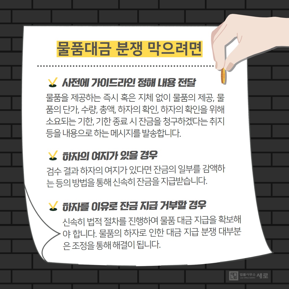 여기까지 물품대금 미지급으로 인한 분쟁을 방지하는 방법에 대해 알려드렸습니다.
