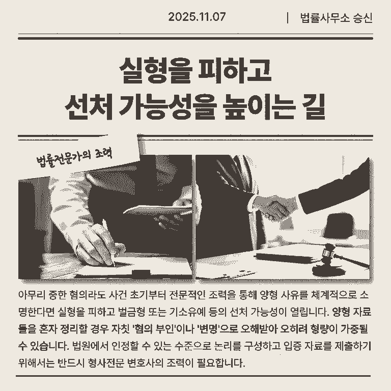 실형을 피하고 벌금형 또는 기소유예 등의 선처 가능성이 열립니다.