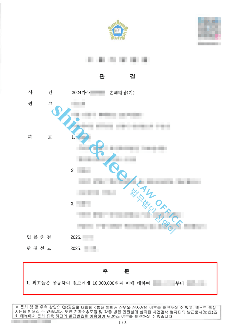 -정식 판결로 진행될 경우 인용 금액이 조정될 가능성이 있었지만, 재판부는 심앤이의 주장을 받아들여 화해권고 결정과 동일한 금액인 1,000만 원 전액을 그대로 인용했습니다.