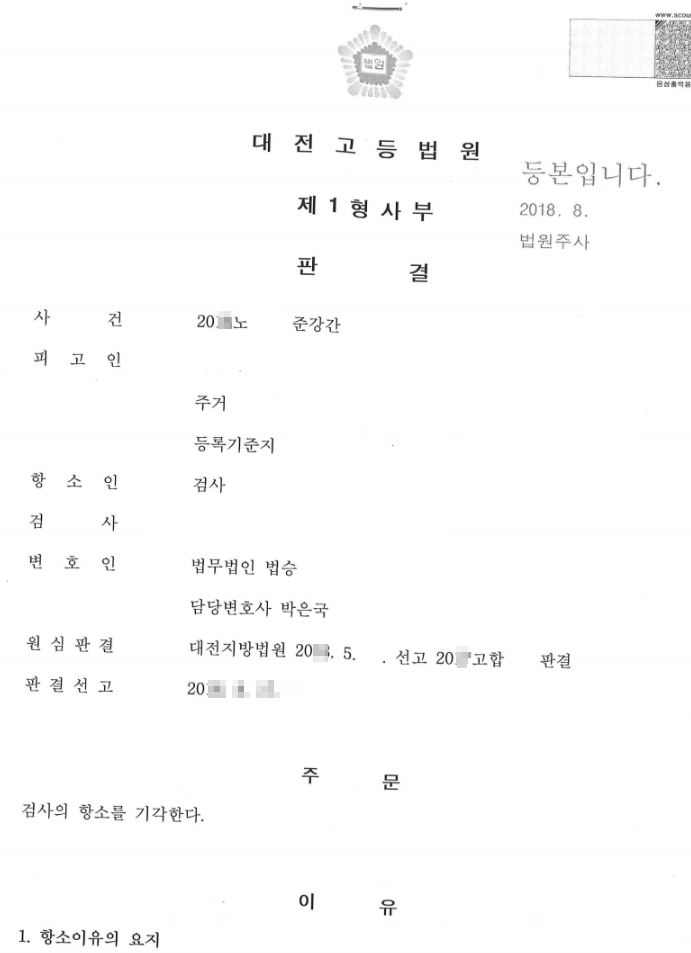 법원은 변호인의 주장을 받아들여 1심에서 무죄 판결을 선고했습니다. 이후 검사가 항소했지만, 항소심에서도 검사 항소가 기각되어 무죄가 확정되었습니다.